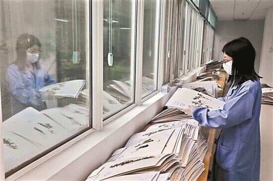 ■华南植物园工作人员在标本馆内对植物标本进行分类整理。新快报记者 李小萌/摄