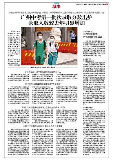 记者从广州市招考办获悉,7月12日进行了2022年广州中考第一批次计划投档录取,共录取普通高中特长生、自主招生类学生、外语类与艺术类学生及港澳子弟班学生4199人,中职三二分段和省级以上重点特色专业5032人,录取人数较去年明显增加。