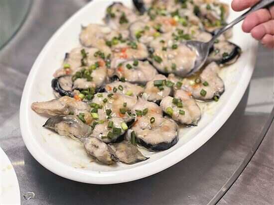 ■鲍汁浸鲜鲍鱼。