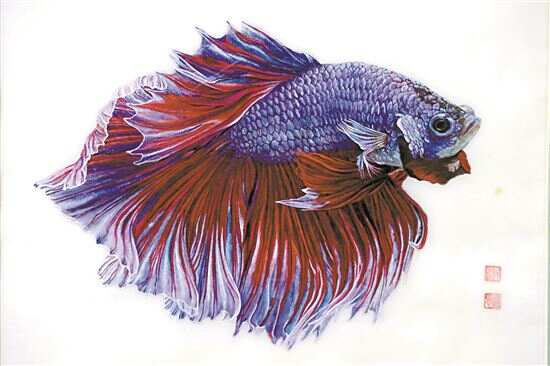“画鱼的鳞片是在迪士普音响博物馆找到的灵感。当时看到了王恒馆长收藏的清代通草画《鱼》,鱼的质感在通草纸上的效果非常逼真。我在那里看了很久,拍了很多照片,回来尝试画了一系列画作,真是太惊喜了。”