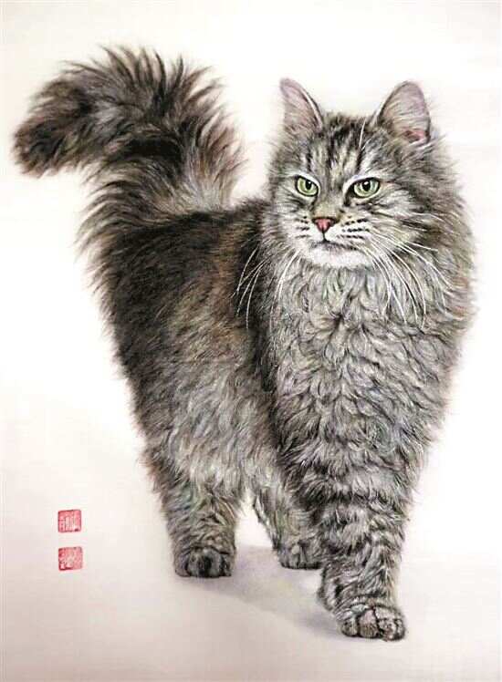 “我在作画时发现,和别的纸张不同,通草画可以拉丝拉得很细,我就想它是不是非常适合画一些很细致的、细节特别丰富的事物,所以我就在动物方面做一个尝试。最开始是画猫,一开始是比较粗糙的,到后来把这种毛绒绒、蓬松的感觉表现出来,效果特别惊艳。这个过程通草纸带给我很多惊喜,就是那种‘原来通草纸还可以这样啊’的感受。”