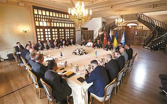 ■7月13日,土耳其、俄罗斯、乌克兰和联合国的代表在土耳其伊斯坦布尔举行会谈。新华社发