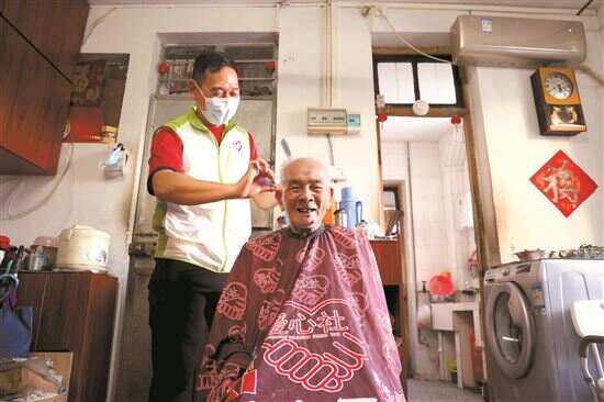 ■广州志愿者李宇云上门为老人理发。今年52岁的他坚持志愿服务已经14年,服务时长达到3500小时,他说,在帮助他人的同时,也收获了属于自己的价值认同。新快报记者 夏世焱/摄