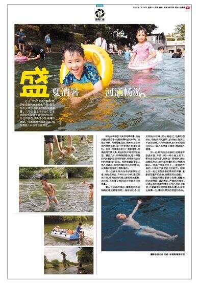 黄女士坐在河涌边,清澈的河水在她脚边激起层层浪花。她告诉记者,五天前她从河涌上的公路经过,但是行程匆匆,没能到河里游玩,成为她心里挥之不去的念想。今天特地带上外孙和女婿过来玩,一家人共享夏日清凉,增进家人感情。