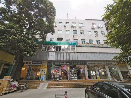 穿过大南路82号商铺西侧的通道往南,迎面就是一大片空地,空地的南面是一栋坐南朝北、贴着白色瓷砖的5层大楼,挂着“大南路82-4”的门牌,这就是平民宫的前座正面。