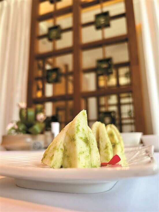 “用山泉水灌溉,纯天然生态种植,物理无害驱虫,不施化肥农药,这样的‘绿色’笋当然要推荐给食客们共享。”于是“与熊猫共谋食”便成为今夏丽轩中餐厅的甄选菜单之一,并美其名曰“熊猫笋”。用黄师傅的话说,笋这家伙“狡猾”得很,不要以为把它从地下刨出来剥去笋衣就“万事大吉”了,并没有!它依然会继续“生长”,所以“踏着晨露入林觅鲜笋”后,最好的享用方式就是尽快把它们吃掉。