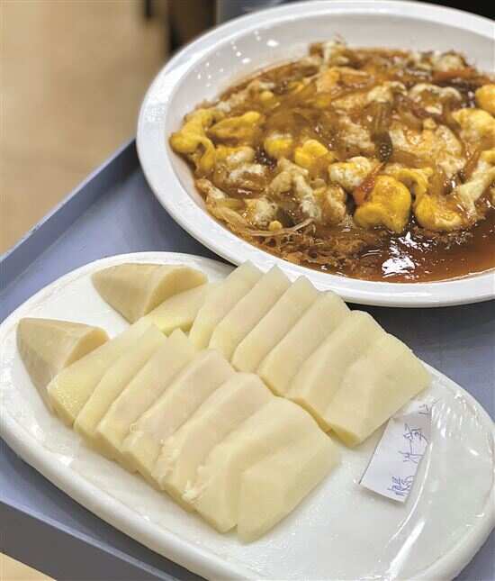 ▲葱油拌甜龙笋。