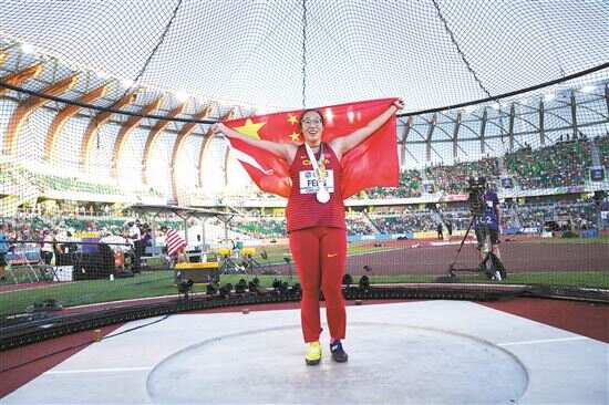 ■当地时间7月20日,在美国俄勒冈州尤金市举行的2022田径世锦赛女子铁饼决赛中,中国选手冯彬以69米12的成绩夺得金牌。新华社发