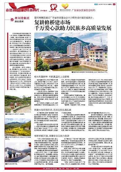行走在清远连州瑶安瑶族乡田心村,绿油油、层叠叠的梯田美景让人陶醉。修水利助春耕,荒废十几年的百亩梯田焕发生机,村民自给自足还新增稳定收入。修建风雨桥、扩宽河道,今年6月当地遭遇大洪水,未雨绸缪修建的河道桥梁工程确保了镇区两岸免受淹堵困扰……这些变化,源于2020年广东扶贫济困日,星河湾集团通过广东省扶贫基金会捐款1000万元,用于支持瑶安瑶族乡开展田心村水利设施和梯田复耕项目、瑶安瑶族乡农贸市场和风雨桥项目。这些乡村振兴项目缓解了当地“急难愁盼”的民生基础问题,给当地村民带来了满满的幸福感和获得感。