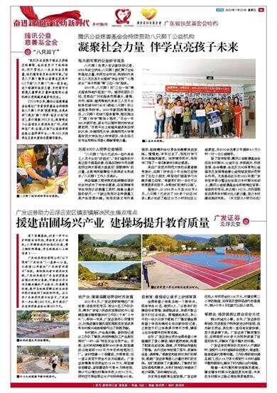 2019年以来,腾讯公益慈善基金会通过广东省扶贫基金会持续捐助八只脚丫开展“筑爱学困,点亮未来”(现为“脚丫伴学·拾贝计划”项目),累计捐献340万元,逐渐使这个公益项目从深圳走向广州,并延伸至广东、全国;从线下公益助学到在线公益伴学平台,一年365天供学生及家长预约志愿辅导服务。