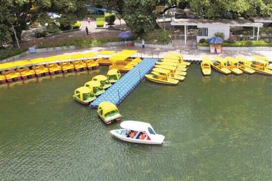 近日,广州市连续迎来高温天气,在流花湖公园,不少市民选择乘坐公园内的游船在湖上游玩,一边消暑一边欣赏公园美景。
