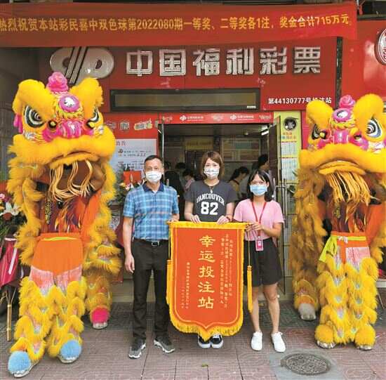 中奖喜讯一传出,佛山市南海区桂城街道海三路19号翠庭轩的44130777投注站业主雷洁明就紧锣密鼓地准备起舞狮庆功仪式。7月16日,庆功仪式正式举行,现场吸引眼球的红色横幅、华丽的狮子、喜庆的锣鼓声、缤纷的礼炮,吸引了众多路人驻足围观。南海区福利彩票发行中心的工作人员特意赶到现场给投注站的站主和销售员送上幸运福彩站锦旗和奖励金,其他投注站的站主也纷纷前往祝贺。