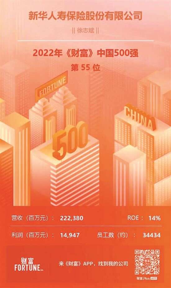 7月12日晚,财富中文网2022年《财富》中国500强排行榜发布。新华保险连续11年入榜,排名第55位。榜单期内显示,新华保险2021年营业收入达2,223.8亿元。