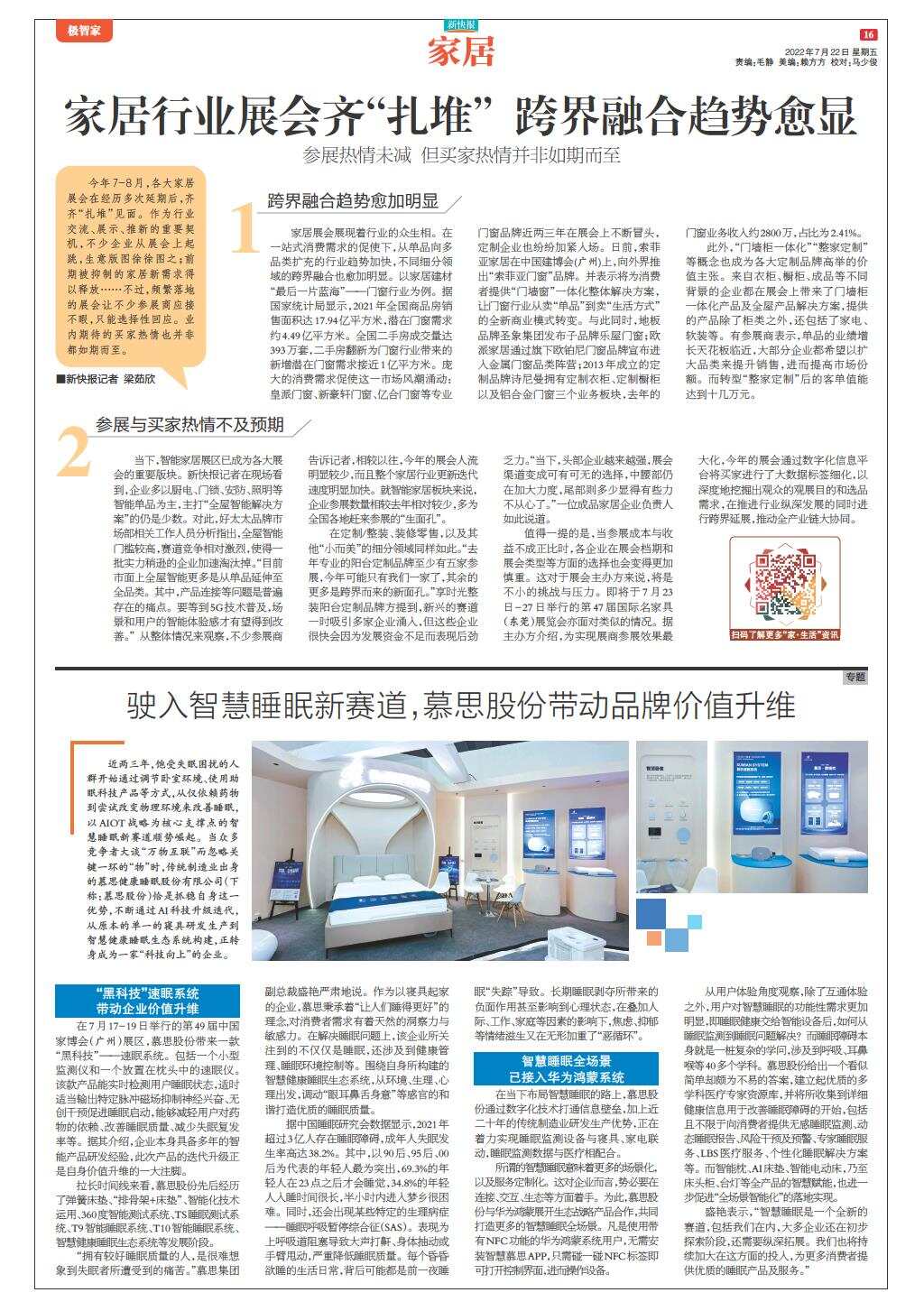 驶入智慧睡眠新赛道,慕思股份带动品牌价值升维