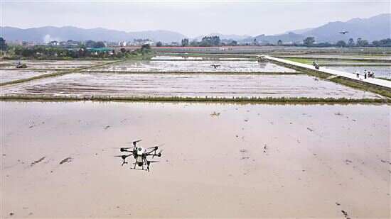 春种 ■3月17日上午,在增城区朱村丝苗米基地,正在进行无人机春播作业。