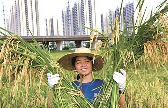 喜悦 ■7月21日,番禺区钟村,中学生们暑假体验农耕文化,兴奋地举起两大捆水稻。