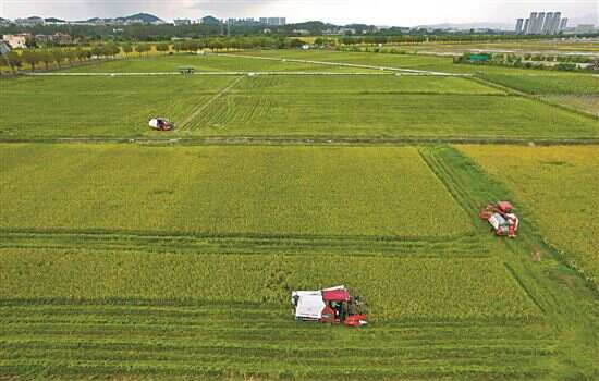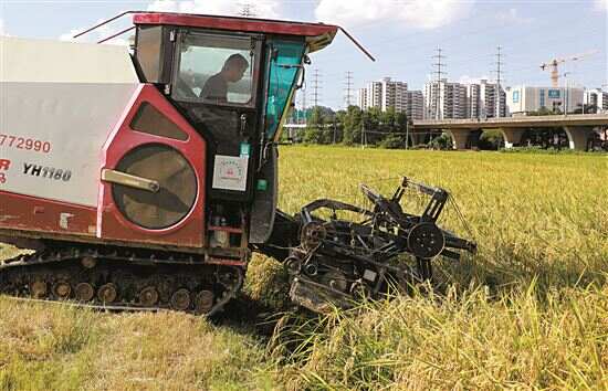 在广州番禺区钟村街大禾田的农业公园,同样是一派农忙景象。大禾田农业公园总面积约为193亩,除去道路,早稻种植面积约为145亩,亩产约700至800斤。村民们从7月21日起通过收割机进行早稻抢收,已经收割30吨,预估3天就能收割完毕。