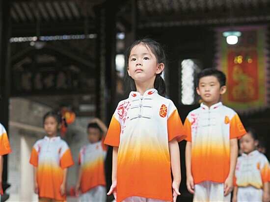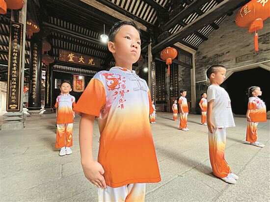 记者在现场看到,宗祠内的杨桃树、龙眼树枝繁叶茂,阳光穿过树荫照在孩子们的脸上,一切显得生机勃勃。古祠的静穆与孩子的飒爽英姿相得益彰,一静一动间,传统与传承在这一刻交汇。