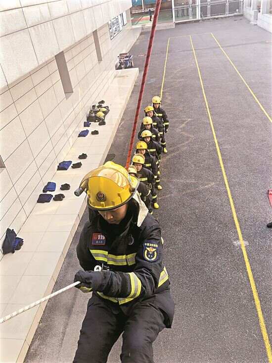 在不出勤的时间里,训练几乎占据了王凯的大部分时间,每天训练至少5个小时。负重训练、体能训练、绳索训练......在重复且枯燥的训练中,王凯将技巧刻进脑子里、肌肉里、骨子里,锻造出过硬的本领。火场里是分秒必争,多一份训练,就能为救援多争取一秒钟,多一份“生”的希望。