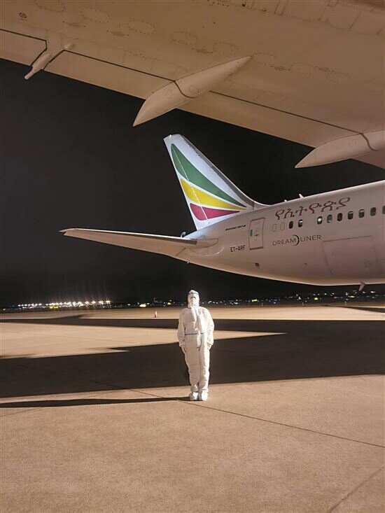 穿着防护服奔走在60℃的停机坪上