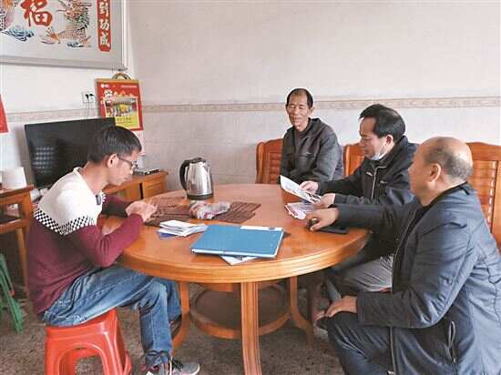 ■王守信(右二)把就业岗位信息送到脱贫户家里。