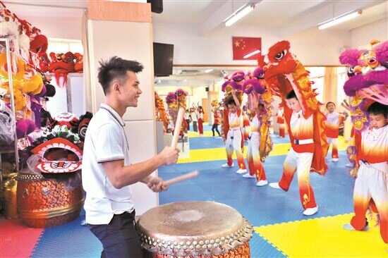 “舞狮需要有武术基础,但如果按照以往的训练方法,比如说一上来就是扎马步,时间久了孩子们也会觉得枯燥,所以在训练和培养上面,我们一直在追求创新。”卢浩生说。