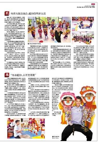 “作为这项运动的传播者,我们有责任让更多孩子爱上醒狮,通过这个项目给孩子带来健康。同样,希望孩子不单单只是学会醒狮的动作,而是更多去了解中国传统文化,了解其中的内涵。”