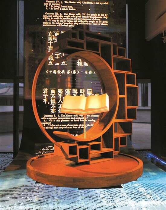 位于文沁阁负一楼的“千秋写印 华夏有章——中华版本概览”展区,以“穿越数千年的版本变形记”为展陈概念,在每一展览板块提取该时期代表性的中华版本形态为元素,从甲骨、竹帛、纸书到多元的数字化媒体,风格从厚重走向现代科技,全过程、全景式呈现出一幅生动的中华版本发展概览图卷。
