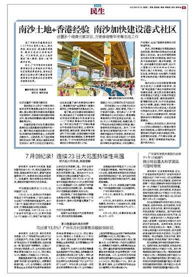 国务院近日公布《广州南沙深化面向世界的粤港澳全面合作总体方案》,提出南沙要加快建设高质量城市发展标杆,加强城市规划建设领域合作,稳步推进智慧城市建设和粤港澳教育合作。