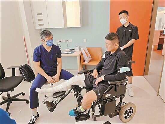 新快报讯 8月1日,奥运双打冠军蔡赟通过社交媒体发布了一条消息:自己在参加一个商业活动进行羽毛球表演赛时意外受伤,腿部“腓肠肌撕裂,皮下出血肿胀”,将会在固定两周后再接受核磁共振看恢复情况。