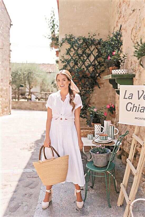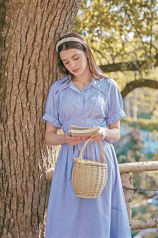草编包与茶歇裙是法式风格的经典组合,几乎不用思考花色与包型,任意组合就能拗出大方造型,此外休闲惬意的方领连衣裙、衬衫、宽肩吊带等单品与草编包也能配,细节上再搭配项链、发箍、耳环等配饰,落落大方又优雅文艺的造型即视感没难度。