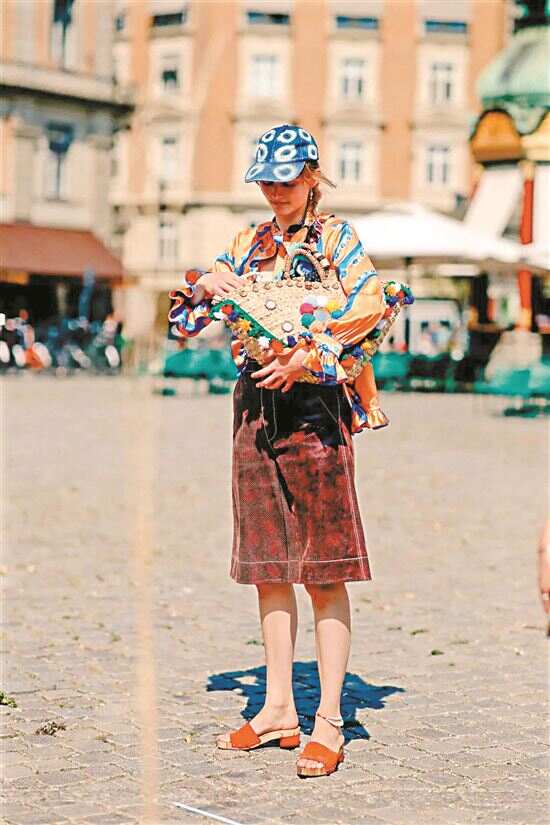 ▶除了染色拼接,草编包今年还流行粘有彩色毛球的款式,看起来更活泼更有质感。