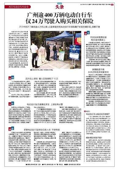 有业内人士向记者表示,目前电动自行车事故纠纷多为人身伤害赔偿,且涉及金额相对较大,“(花费)几万或者十几万元的情况都会有”。与之相比,物损赔偿的纠纷较少且涉及金额较低,一辆电动自行车的价格最低只要数百元。另一名保险销售员说,“穗安行”为警保联合推出的产品,保额较低,带有“试水”性质。这个险种市场虽大,但风险和利润均不明确。