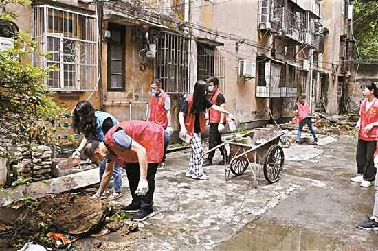 ■湘桥区的党员干部和志愿者深入社区清理卫生死角。