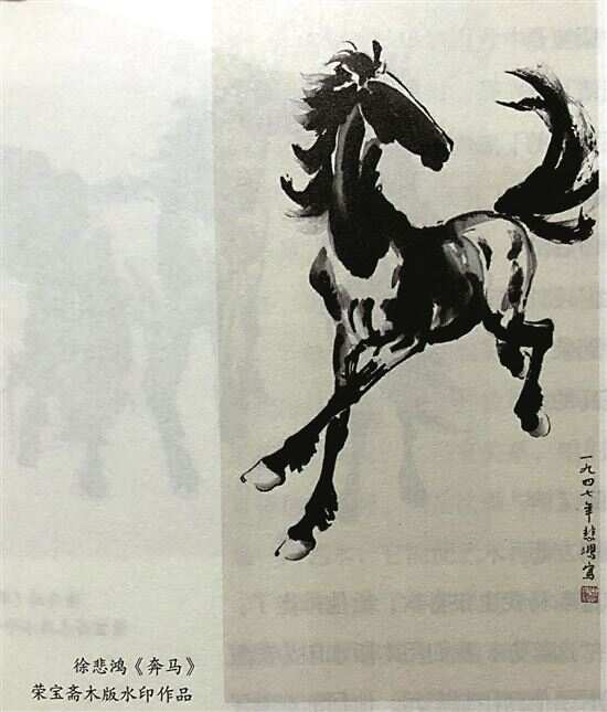 徐悲鸿曾带着一幅马找到荣宝斋,说马腿长了点,希望通过木版水印修一修。当时负责木印刻的侯恺说,“这容易,复制勾描时,把它缩短就行了。”徐悲鸿听后极为开心,于是用指甲在那条马腿上画了两道印,示意去掉中间部分。