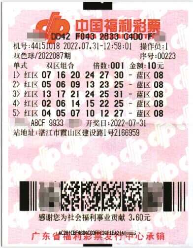 新快报讯 记者陆妍思 通讯员黎珍报道 双色球第22087期开奖中,湛江市霞山区建设路1号的44151018投注站中出1注606万多元头奖,中奖彩票是一张自选的10元5注单式票,中奖次日,幸运儿张先生(化姓)在投注站业主许姐的陪同下极速现身湛江市福彩中心办理兑奖手续,其间对许姐的诚信经营赞赏不已。
