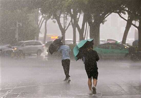 ■受台风“木兰”影响,10日下午,天河太古汇一带突降大雨。预计今天广州仍有中到大雨,12日至14日降雨减弱,气温逐渐回升。新快报记者 孙毅/摄