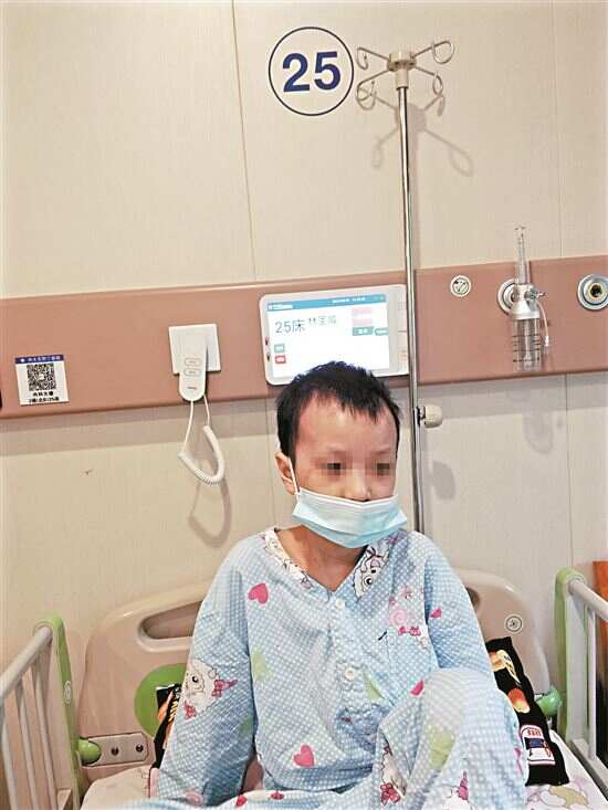 ◀病情复发后,小葳二次入院接受新一轮化疗。