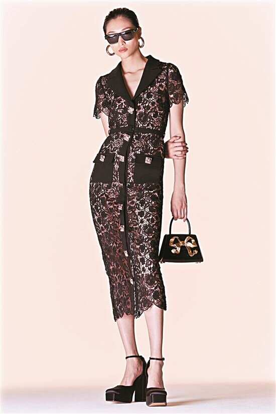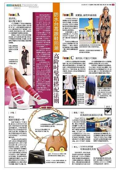 今季防水台高跟鞋多数用来搭配短款下装,借以拉伸腿部线条让造型看起来更疏朗显腿长,因为鞋型已够抢眼,日常造型穿搭其他单品就要以简洁为主,干练的套装、复古的印花茶歇裙、舒适的H形连衣裙等都是与之匹配的单品。