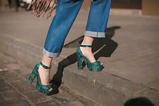 ▲动物纹元素每年都会火一遍,当这种相对复杂一些的元素应用于防水台高跟鞋时,比较适合搭牛仔裤一类随性的单品,平衡一下繁复的感觉。