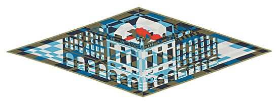 ▲羊绒配真丝的梦幻菱形巾,呈现拉长变形的圣特娜福宝大道外墙。