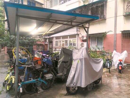 “充电都是把电瓶拆下来提到家里面充电,没有其他办法。”刚刚冒雨回到家的李先生看了一眼面前的简易单车棚说。