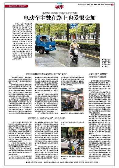 事实上,电动车使用者在享受通勤方便的同时,在停放、充电的体验上也吐槽不断。尤其是7月1日起,新修订的《广东省实施〈中华人民共和国消防法〉办法》(下称《实施办法》)正式施行,其中规定已经建好的小区需设置或者改造集中停放、充电场所,同时禁止在室内场所停放电动自行车、电动摩托车,或为其充电,禁止携带电动自行车、电动摩托车及其电池进入电梯轿厢。记者在走访中发现,在新法规之下,不少车主仍然因为充电桩难觅而继续入屋充电或者“飞线”充电。与此同时,记者走访还发现,非机动车道缺失或不连贯的老难题依旧让电动车主们大叹“太难了”。