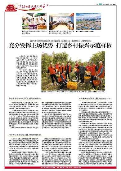“打造乡村振兴示范样板。”在今年的政府工作报告中,肇庆市提出这一目标任务。在发挥省直帮扶单位和佛山帮扶力量资源优势的同时,肇庆充分利用主场“作战”优势,举全市之力,实现相互补充、凝聚强大合力,共同推进乡村全面振兴。