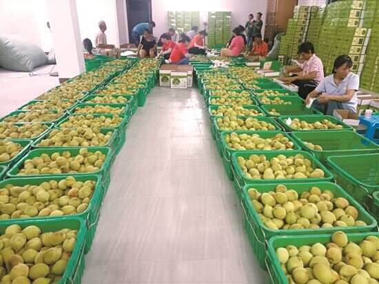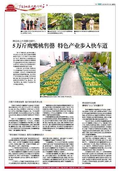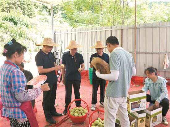 顶着炎炎烈日,驻镇工作队队员们走进果园,与村干部、果农一起采摘验果、装箱打包……驻太保镇工作队身体力行,参与采摘、品控、打包、送货等环节。一箱箱新鲜优质的鹰嘴桃顺利走出大山,整车发往广州、佛山等地,收到帮扶单位、爱心人士一致好评。消费帮扶行动犹如一场及时雨,有效解决了旧城鹰嘴桃的销售问题,对壮大旧城村集体经济起到了强有力的助推作用。
