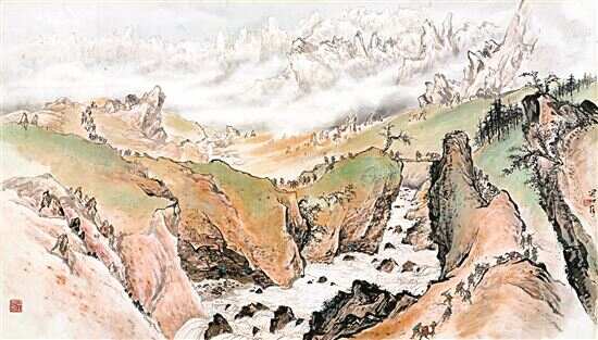 ■关山月作品《长征路上》,现藏于关山月美术馆。