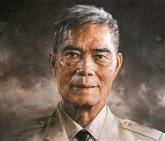 画面内的主人公麦贤得身着军装,目光坚定,咬紧牙关的神态十分传神。在广东画院展出现场,得到了麦贤得及其家人的肯定。“外形很像,内涵很深,特别是眼神。”麦贤得的夫人李玉枝表示。
