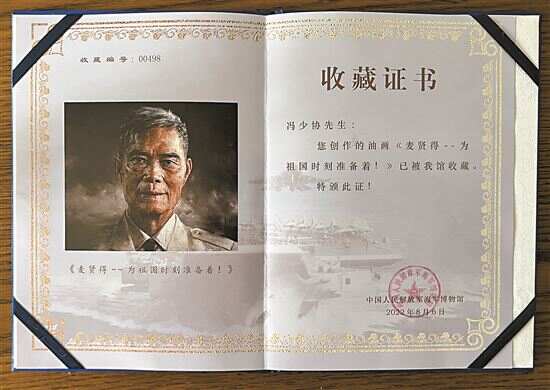 在当日的收藏仪式上,海军博物馆馆长张利波表示,冯少协副院长以笔墨丹青浸润忠诚品格,以时代画像映照强军壮志,彰显了人民艺术家“有信仰、有情怀、有德艺、有担当”的精神风貌,《麦贤得》将在博物馆展厅永久陈列,不断激励青年人投身海军、献身海军、建设海军,为全面建成世界一流海军贡献力量。