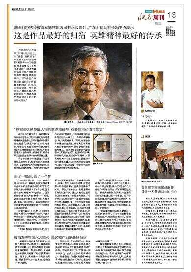 油画《麦贤得》被海军博物馆收藏并永久陈列,广东画院副院长冯少协表示