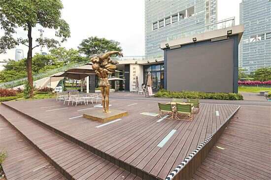 ■海珠会展东新时代驿站环境优美,外面配有休闲桌椅供市民休憩。
